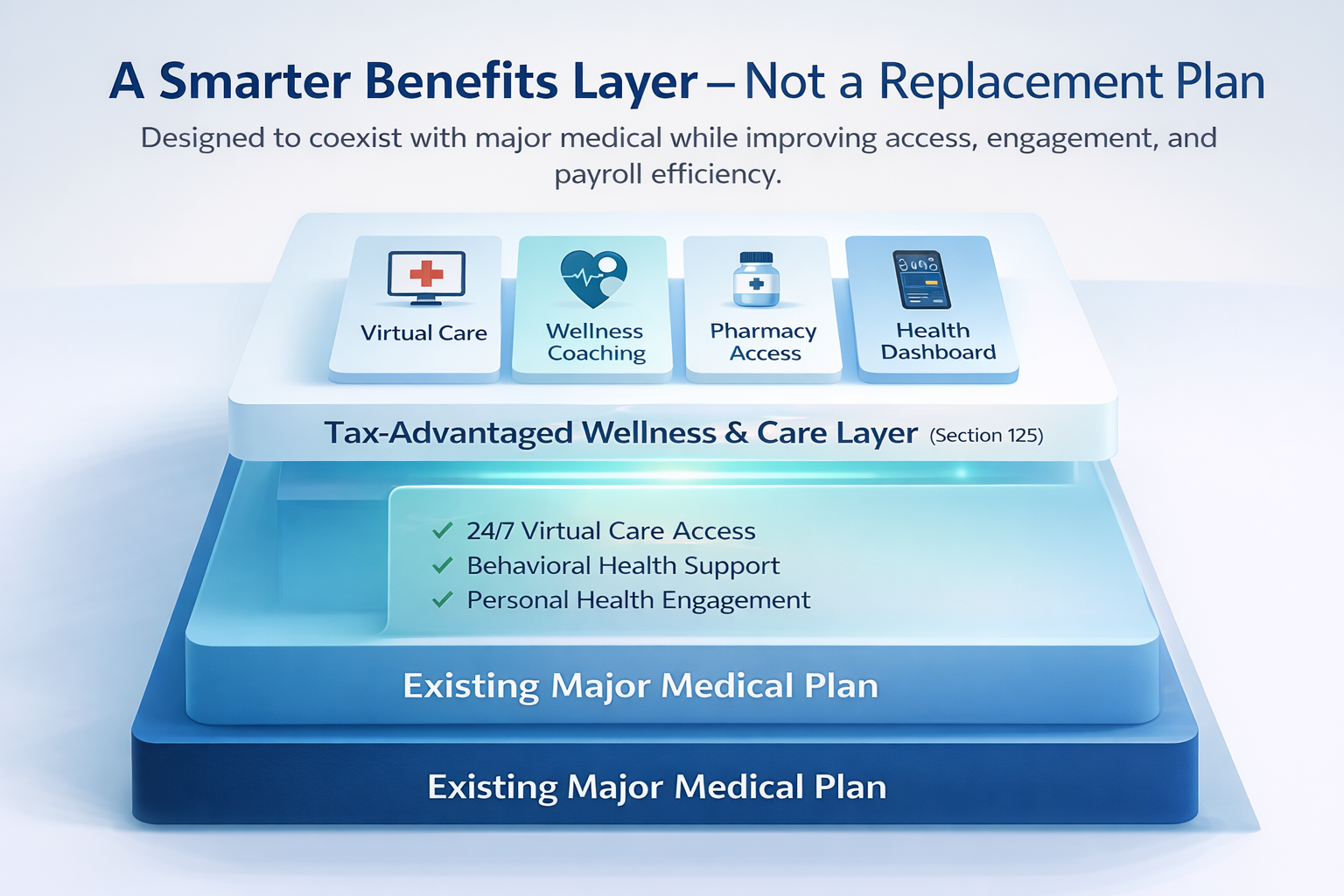 Save on taxes and boost your employee take-home pay—every pay period. Our 125 Cafeteria Plan combines powerful tax savings with paycheck credits to give you more money in your pocket. You’ll also enjoy zero-cost prescriptions, virtual care, and coverage for your entire team—all with no added tax headaches.